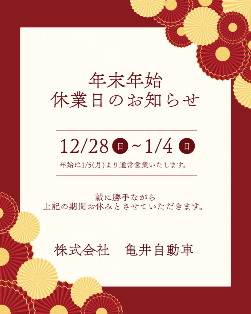 年末年始休業日のお知らせ